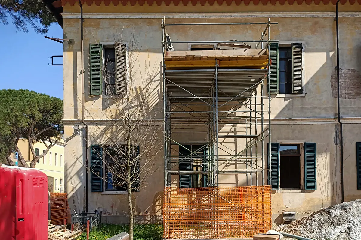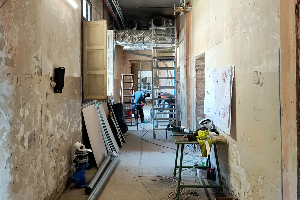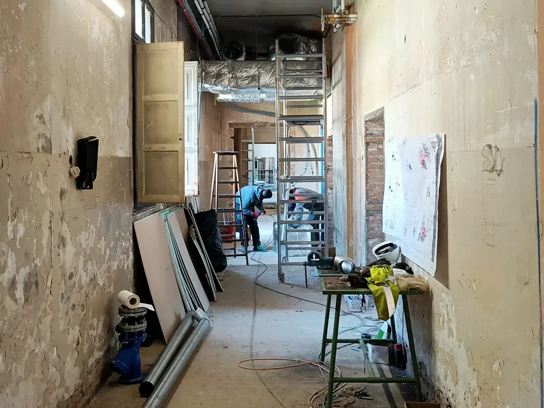 • Demolizioni e rinforzi: le demolizioni mirate di pareti, controsoffitti e pavimentazioni sono state ultimate nel pieno rispetto dei vincoli storici. Sono stati realizzati i rinforzi strutturali tramite cerchiature metalliche per elevare gli standard di sicurezza sismica. Le carpenterie metalliche per l’irrigidimento dei solai esistenti sono state interamente posate e completate già a metà febbraio.
