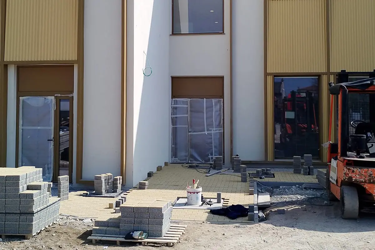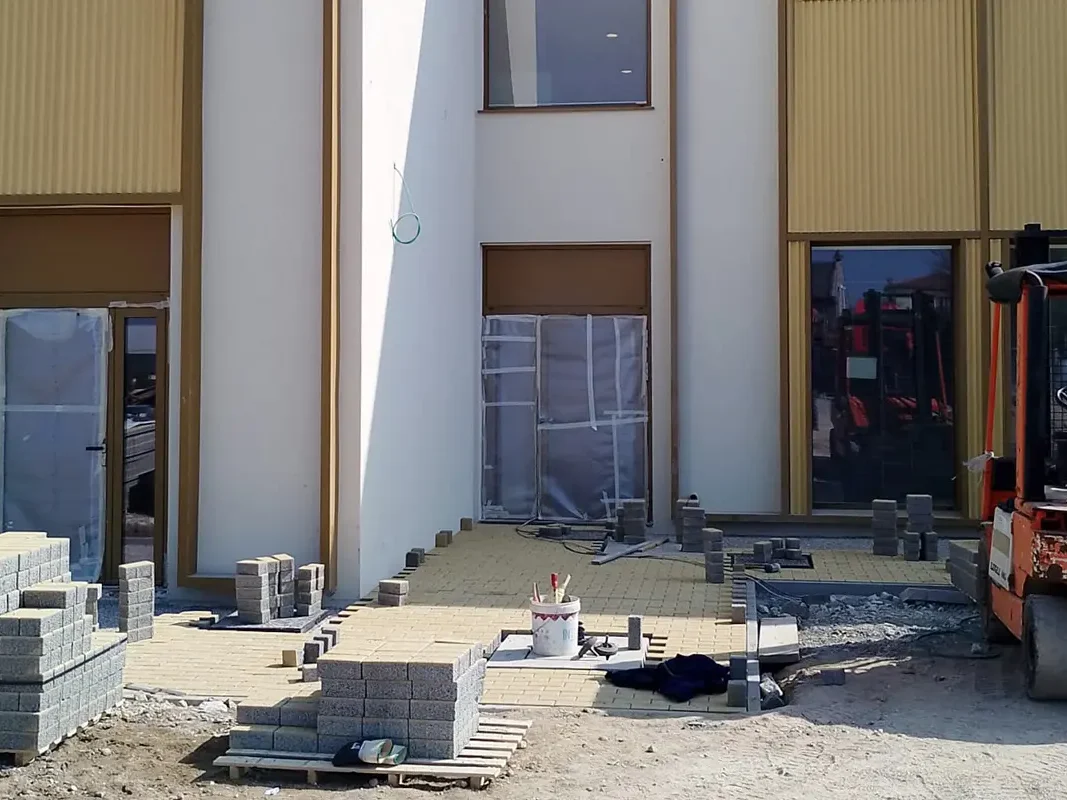 La capacità di dialogare con il contesto urbano è evidente nelle opere esterne, dove Incide ha gestito il raccordo tra le quote dell’edificio e la viabilità preesistente, garantendo l’accessibilità universale. Nello specifico, è stata realizzata gran parte della pavimentazione dei marciapiedi drenanti sui lati sud e ovest, con la messa in quota dei sottofondi e la stesa di terra vegetale nelle aiuole perimetrali.