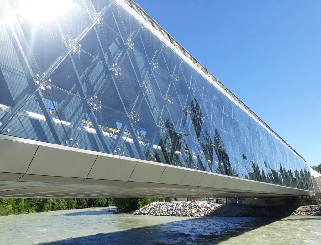 Val d’Arve Bridge (Geneva): this project was characterised by the integration of the main structure and glass cladding; particular attention was paid to the connections in relation to vibrations caused by passing trains and environmental requirements, with a detailed handling and assembly sequence.