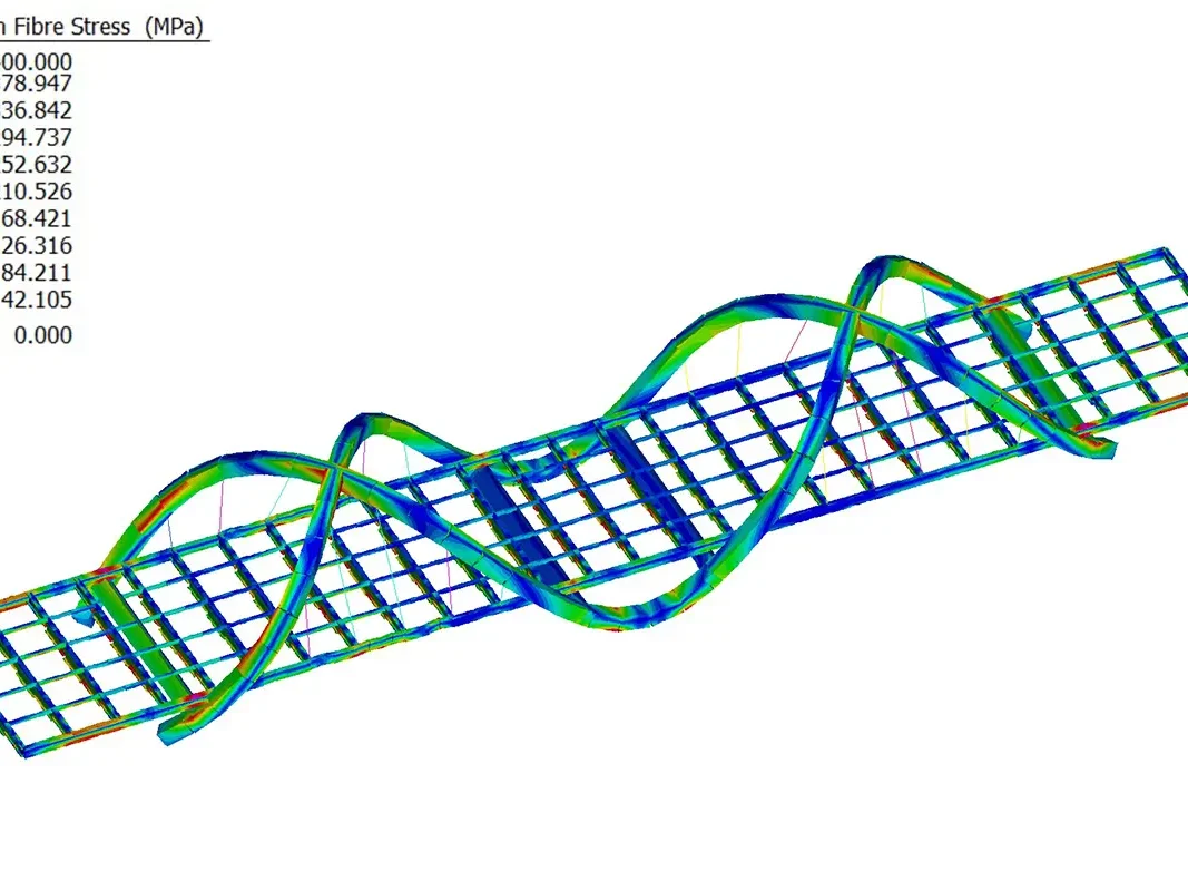 - Simulations required: response to traffic loads, wind, earthquake and verification of global and local stability.