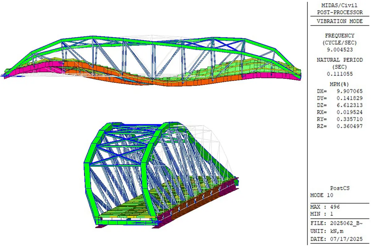 - Types of FEM analysis: 3D mesh, modal analysis to evaluate characteristic frequencies, non-linear analysis for large displacements or instability phenomena. In the presence of significant spans, concentrated masses or activities that can generate vibrations (e.g. rail traffic), modal analysis is essential.
