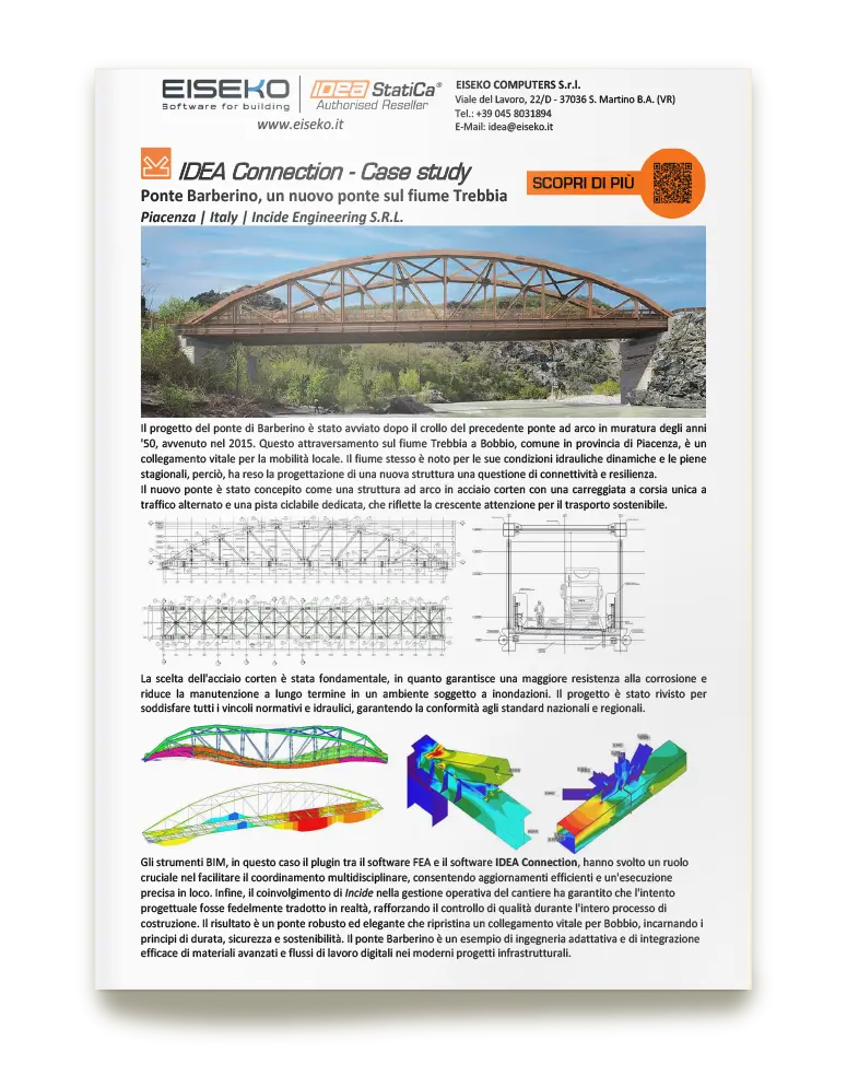 The detailed design of steel bridges requires thorough structural analysis, especially in complex hydraulic contexts. The new Barberino bridge over the Trebbia River in the municipality of Bobbio (PC) is a prime example of a highly technical infrastructure project developed by Incide and published as a case study by IDEA StatiCa.