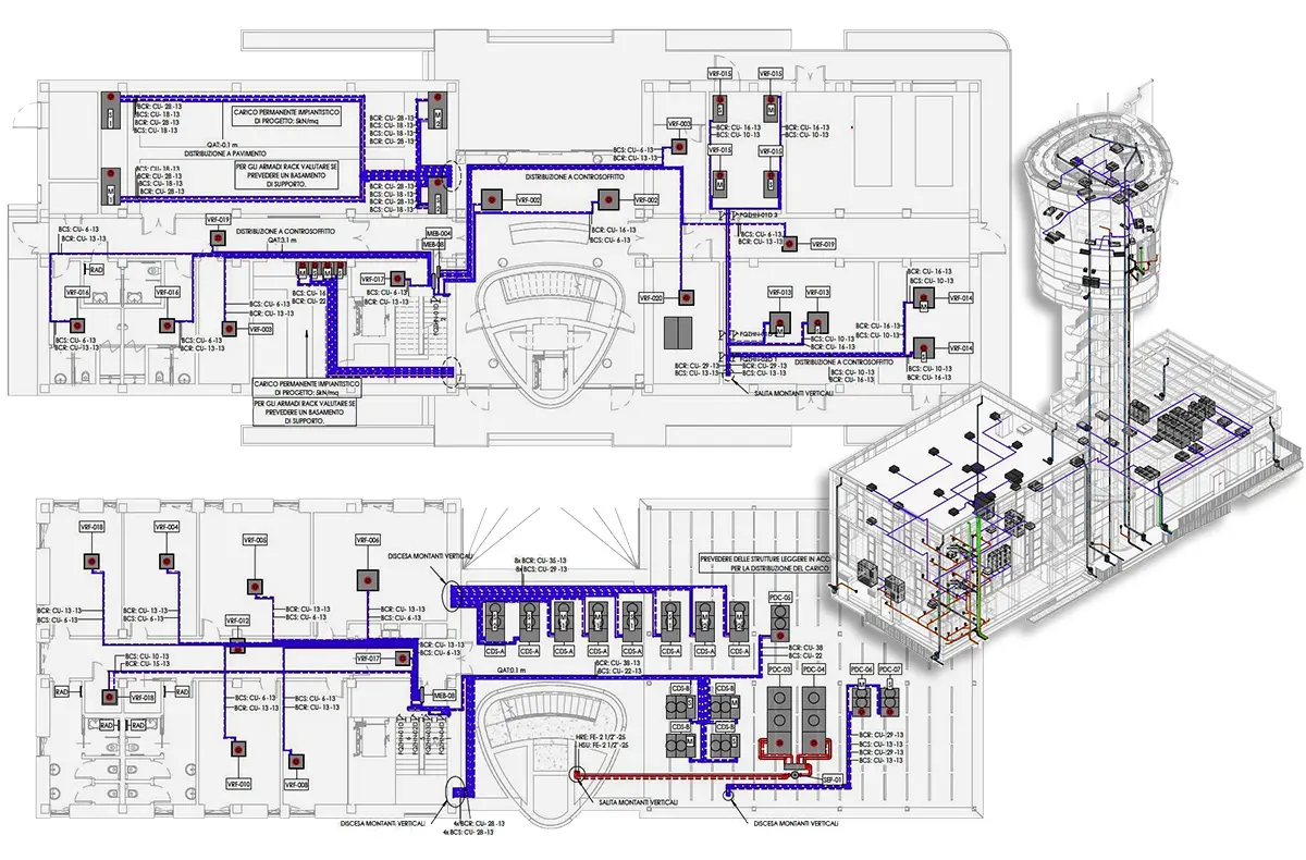 The architectural solution and space planning meet the requirements for delivering air traffic control and air navigation assistance services operated by ENAV S.p.A., in accordance with Article 691-bis of the Italian Navigation Code. The project integrates a photovoltaic system supported by specific glare analysis, and was developed through multidisciplinary BIM coordination to optimise clashes, maintenance and performance throughout the asset lifecycle.