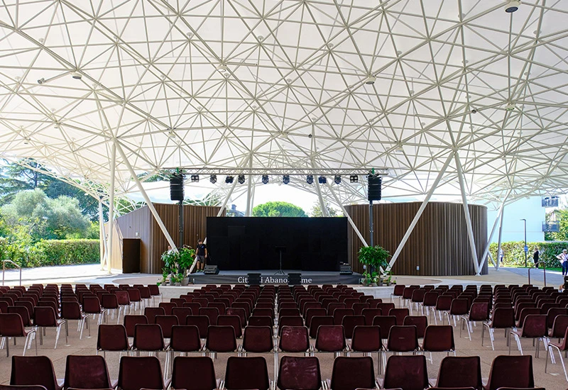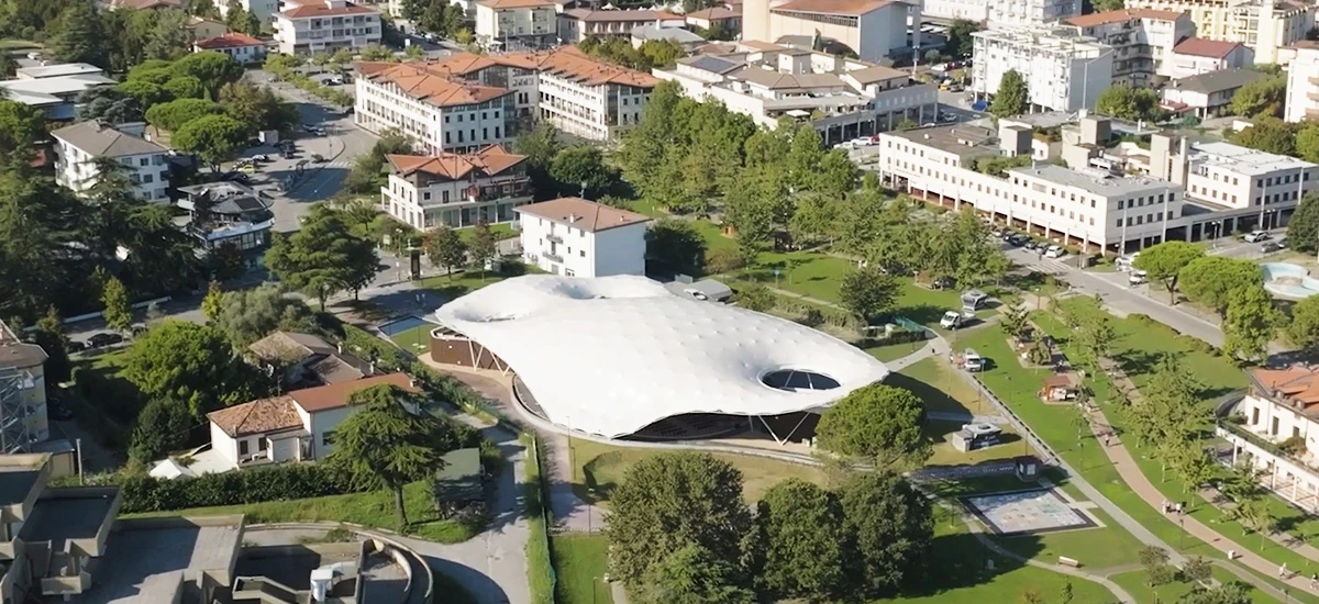 Projet de nouveau centre polyvalent pour remplacer l'ancien théâtre Magnolia au sein du Parco Urbano Termale à Abano Terme (PD). La nouvelle intervention a une valeur totale de plus de 3 millions d'euros.