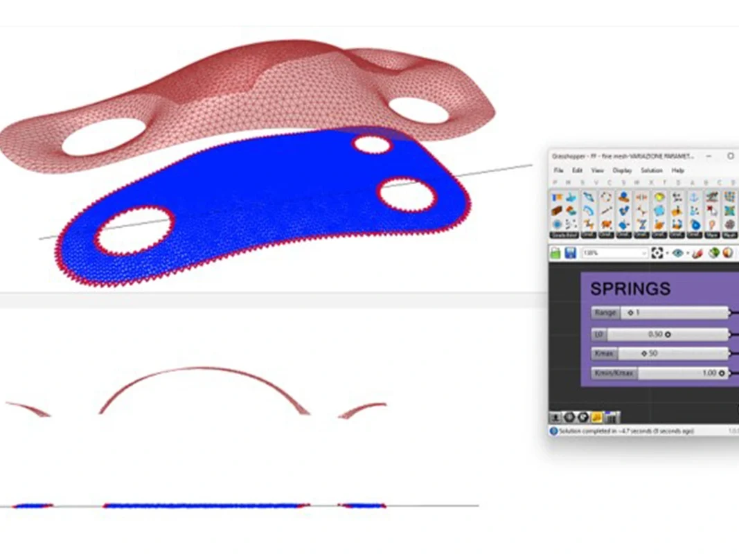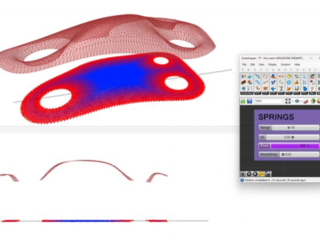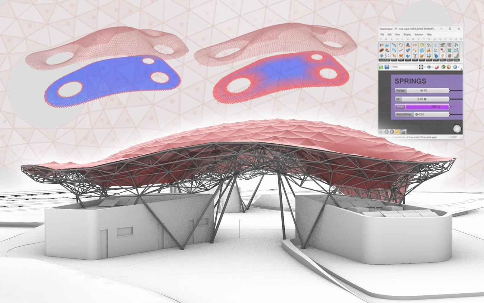 Il team ha adottato un approccio di form finding parametrico basato sull’uso di Grasshopper e del suo plugin Kangaroo.